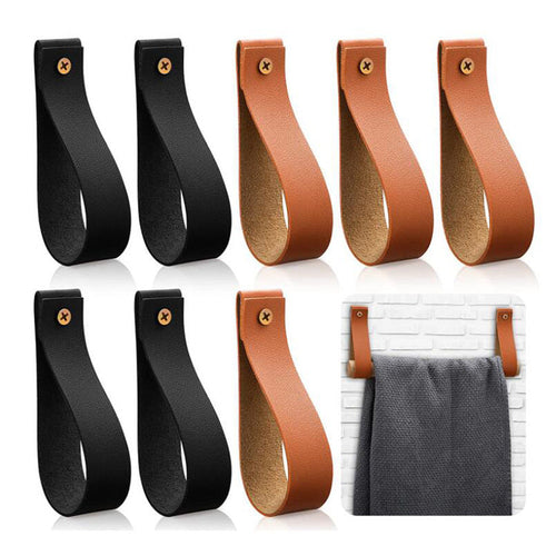 8 Pcs PU Leather Wall Hooks PU Leather Straps Hanger Towel Hooks